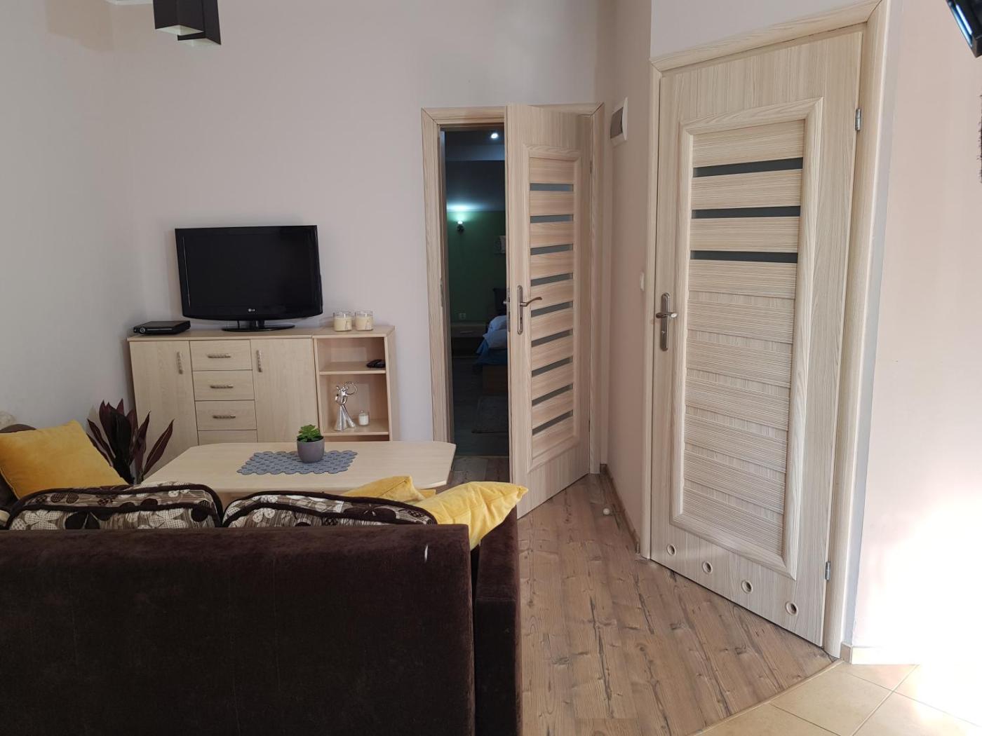 Rodzinny apartament typu Studio. Featuring a dining area, a wardrobe and an electric kettle, this studio includes a private bathroom. Guests can make meals in the kitchen that features a refrigerator, a dishwasher, kitchenware and a microwave. Boasting a balcony with a quiet street view, this studio also features a private entrance and a flat-screen TV. The unit has 2 beds. Studio - 4 osobowy. Powierzchnia pokoju ok.: 40 mkw. ;