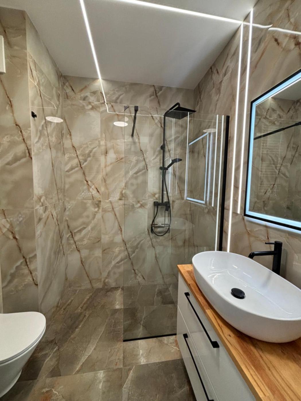 Apartament z 1 sypialnią i balkonem. This apartment comes with 1 living room, 1 separate bedroom and 1 bathroom with a shower and a hairdryer. The fully equipped kitchenette features a stovetop, a refrigerator, a dishwasher and kitchenware. This wheelchair accessible apartment has a washing machine, a seating area with a flat-screen TV and a roll-in shower. The unit has 2 beds. Apartament - 5 osobowy. Powierzchnia pokoju ok.: 36 mkw. ;