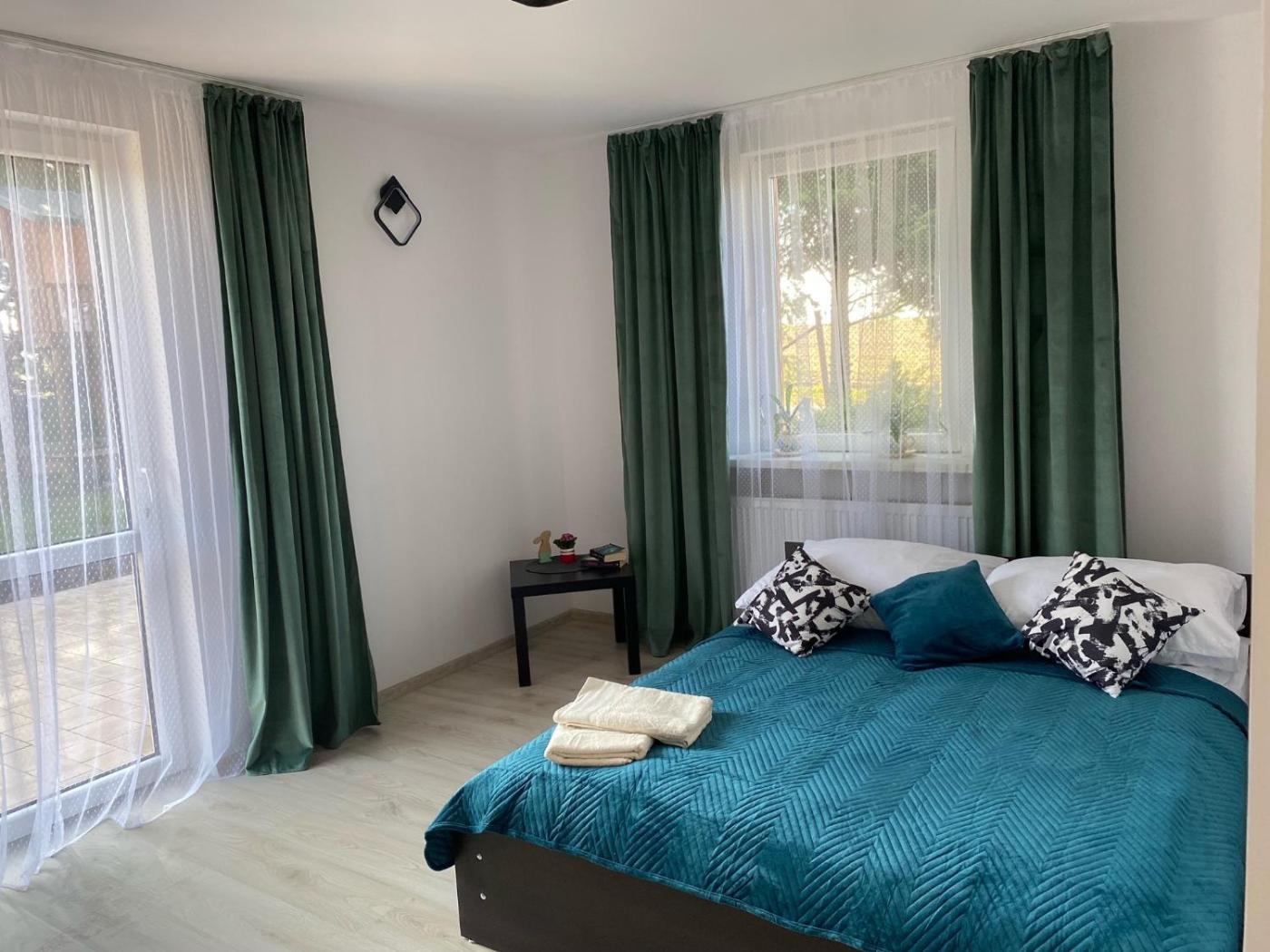Oferta domu wakacyjnego obejmuje kilka sypialni (2), kuchnię z pełnym wyposażeniem oraz taras.