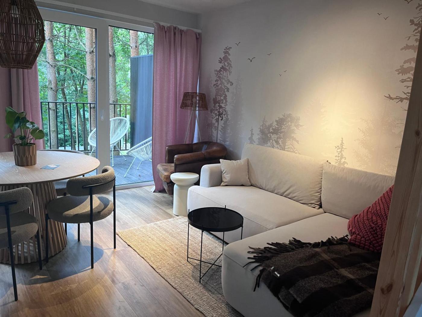 Domek z 2 sypialniami. Guests will have a special experience as this chalet provides a sauna. This chalet is comprised of 1 living room, 2 separate bedrooms and 1 bathroom with a shower and free toiletries. Guests will find a stovetop, a refrigerator, a dishwasher and kitchenware in the well-fitted kitchen. The chalet also has a barbecue. Featuring a terrace, this chalet also offers soundproof walls, a tea and coffee maker and a flat-screen TV with streaming services. The unit offers 4 beds. Domek - 6 osobowy. Powierzchnia pokoju ok.: 65 mkw. ;