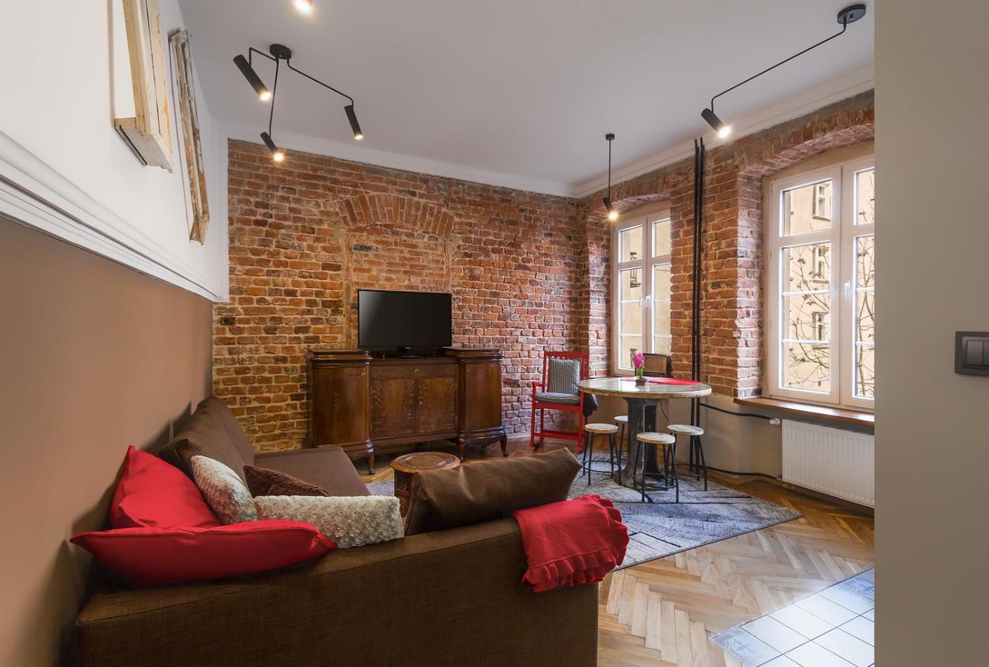 Apartament. Boasting a private entrance, this apartment comes with 1 living room, 1 separate bedroom and 1 bathroom with a walk-in shower and a hairdryer. Guests can make meals in the kitchen that features a stovetop, a refrigerator, a dishwasher and kitchenware. This apartment has a washing machine, flat-screen TV with streaming services, city views, as well as chocolate for guests. The unit has 2 beds. Apartament - 4 osobowy. Powierzchnia pokoju ok.: 37 mkw.